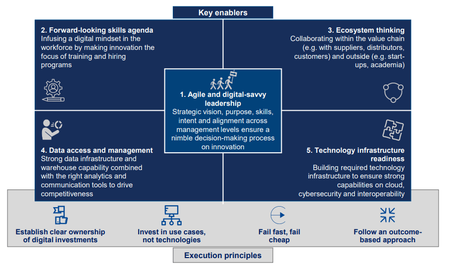Through research discussions with industry leaders, the DTI identified five key enablers for maximizing returns on digital investments.